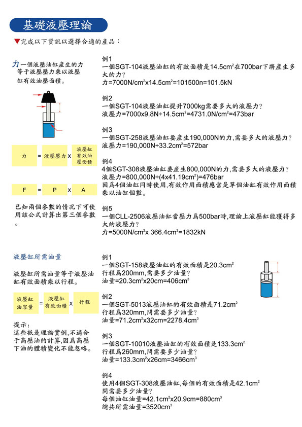 液压常识及產品选用表