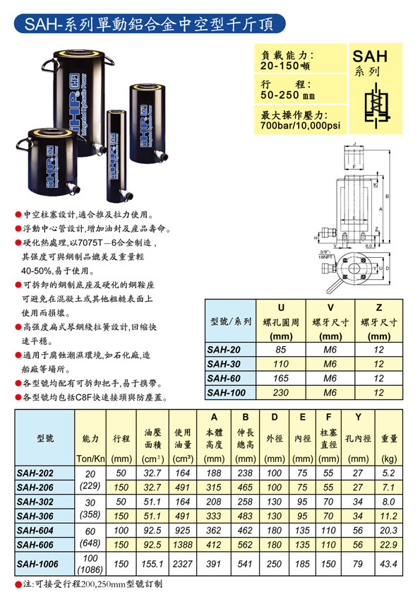 SAH铝合金油缸
